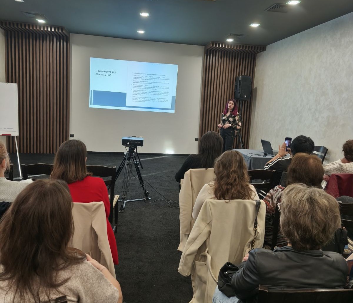 Сред останалите лектори участие взе и ас. Мирослава Илиева от катедра „Здравни грижи", Русенски университет „Ангел Кънчев" с презентация на тема „Двойна диагноза: злоупотреба с вещества и психично здраве"