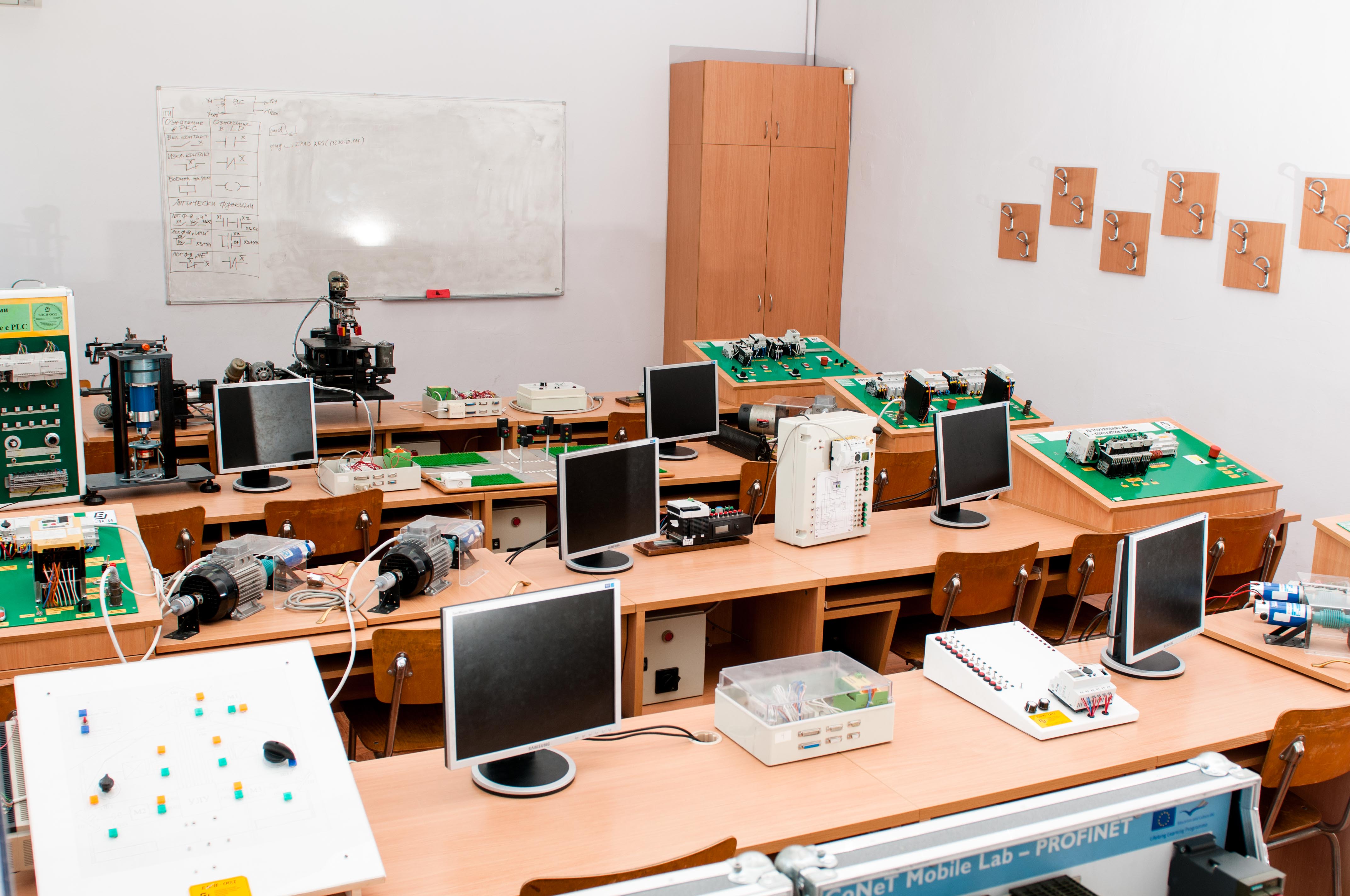 Учебните занятия се провеждат в учебни зали, обзаведени със съвременна специализирана и компютърна техника, софтуерни продукти на водещи в областта фирми, като EATON, ePLAN, Siemens, Beckhoff, National Instruments и други.